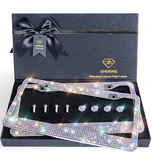 HonLena Delning bling-licensplattformsram, 2-pack licensplattram med premium presentbox för kvinnor, strass licensplattor med 1 100 st strasstenar (färgglada strasstenar)