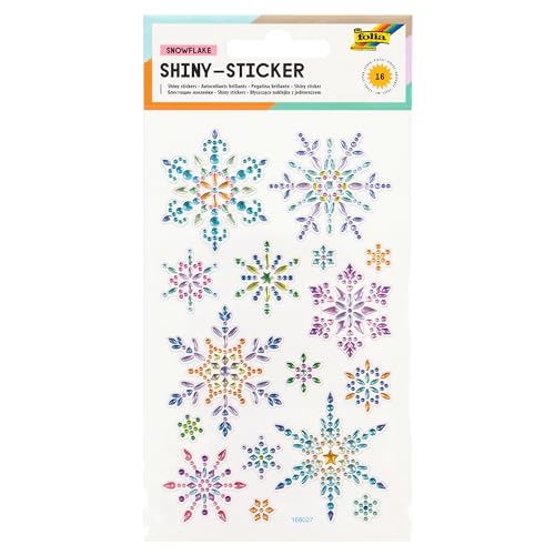 folia 18306 Shiny, snöflinga, 16 klistermärke, av färgglada strasstenar, i olika motiv, dra bara av från folien, one Size