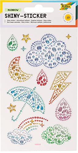 folia 18305 Shiny, Rainbow, 13 klistermärke, av färgglada strasstenar, i olika motiv, lätt att ta av från folien, one Size