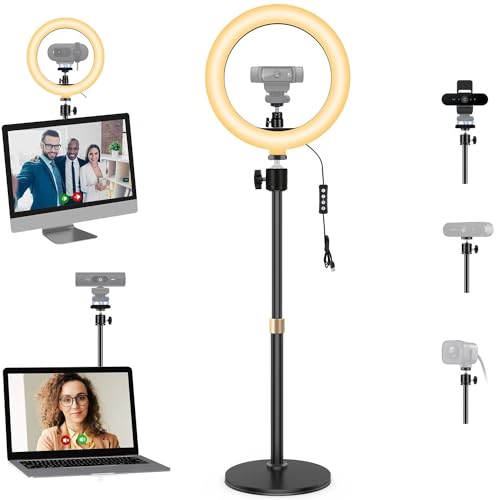 Webbkamera selfie-ljusstativ, 26 cm ringlampa med skrivbordshållare och magnetisk montering kompatibel med Logitech C920 StreamCam C922 C930 C925 C615 BrioWebcams