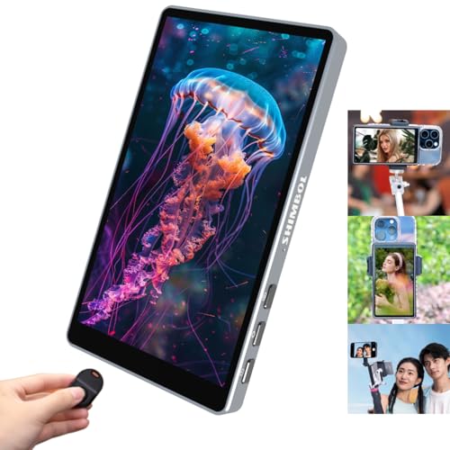 Shimbol CP5 selfieskärm, 5-tums FHD-pekskärm, bakkamera, 1080P, telefon selfie-vlog med Bluetooth-fjärrkontroll, för iPhone och Android, för selfies vlogging, live-streaming, TikTok.