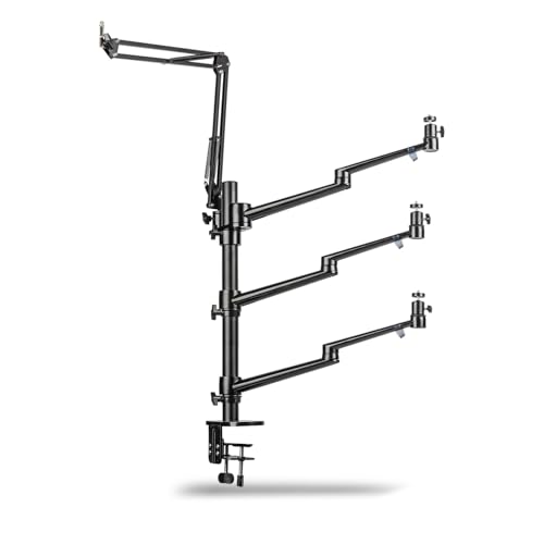 Walimex pro flexibel mikrofon Boom Arm bordsstativ för montering av kamera, LED upp till 2 kg inkl. 360° kulhuvud för streaming, vlogging, videosamtal I stabilt klämstativ upp till 65 mm bordstjocklek