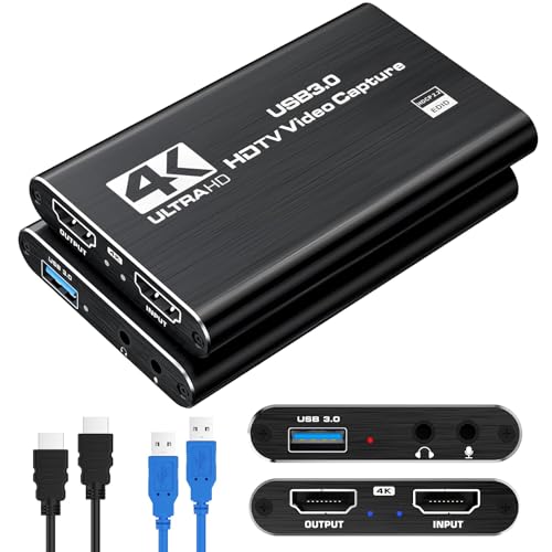 Amtake 4K Video Capture Card, USB 3.0 Capture Card stöder 4K HDMI-Loop utgång och 1080P 60FPS streaming videoinspelning kompatibel med Xbox/PS4/switch/kamera/PC/OBS