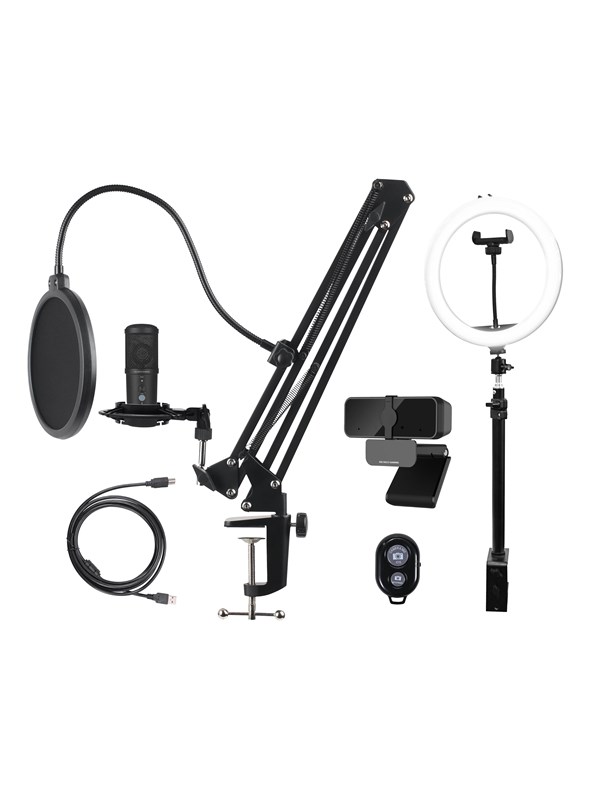 Deltaco Streaming Kit Microphone Webcam Ring Light with table mount