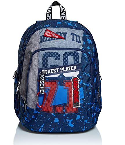 Seven Backpack, OUTSIZE STREET PLAYER Knapsack, Book Bag, for Teen, Girls&Boys, Large Capacity, For School, Sport, Free Time, Italian Design, navy