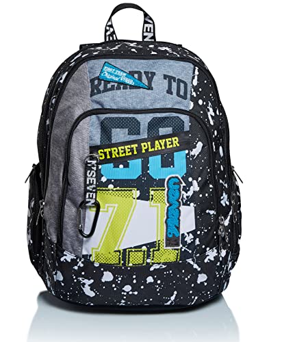 Seven Backpack, Advanced, STREET PLAYER Knapsack Padded School Bag, Book Bag, One Size for Teen, Girls&Boys, Large Capacity, For School, Sport & Free Time, Laptop Sleeve, USB-Port, black/white