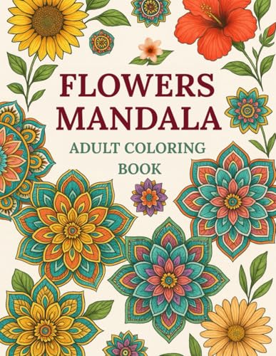 FLOWERS MANDALA: a floral-themed coloring book for adults and teens, 40 designs from simple to complex, perfect for unleashing creativity and reducing stress