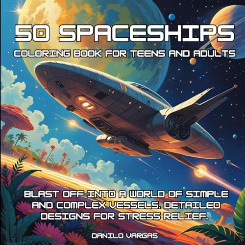 50 Spaceships Coloring Book For Teens And Adults: Blast off into a world of simple and complex vessels. Detailed designs for stress relief.