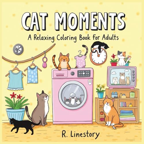 Cat Moments: A Relaxing Coloring Book for Adults: Stress Relief, 50 Thick-Line Funny Activities Scenes, Bold and Easy – Closed Contour, No Complex Details, Just Calm!