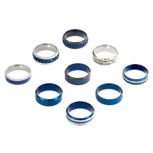 ADRAMATA 9 st Herr Rostfritt Stål Ring Anti-Stress Vintage Vigselringar Förlovningsringar Löfte Kedja Ring Fidget Ringar Herr Svart Silver
