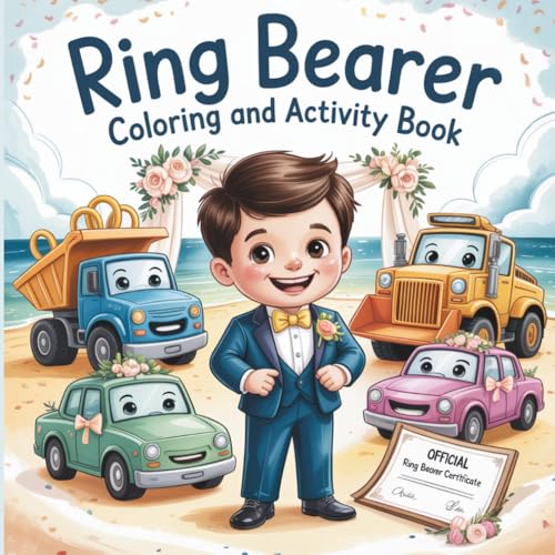 Ring Bearer Coloring and Activity Book with Fun Truck-Themed Pages and Wedding Scenes: Reduce stress and create a heartfelt gift for boys ages 2–8
