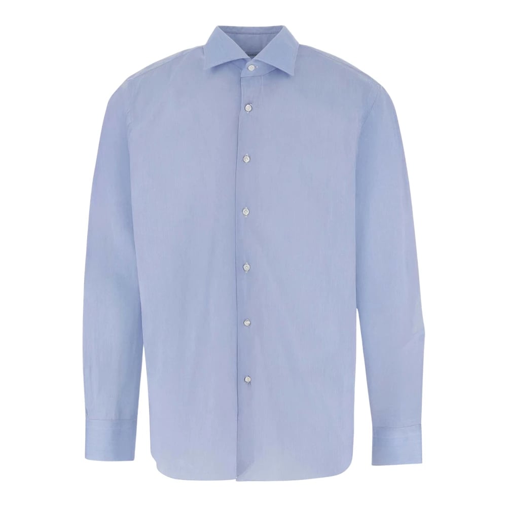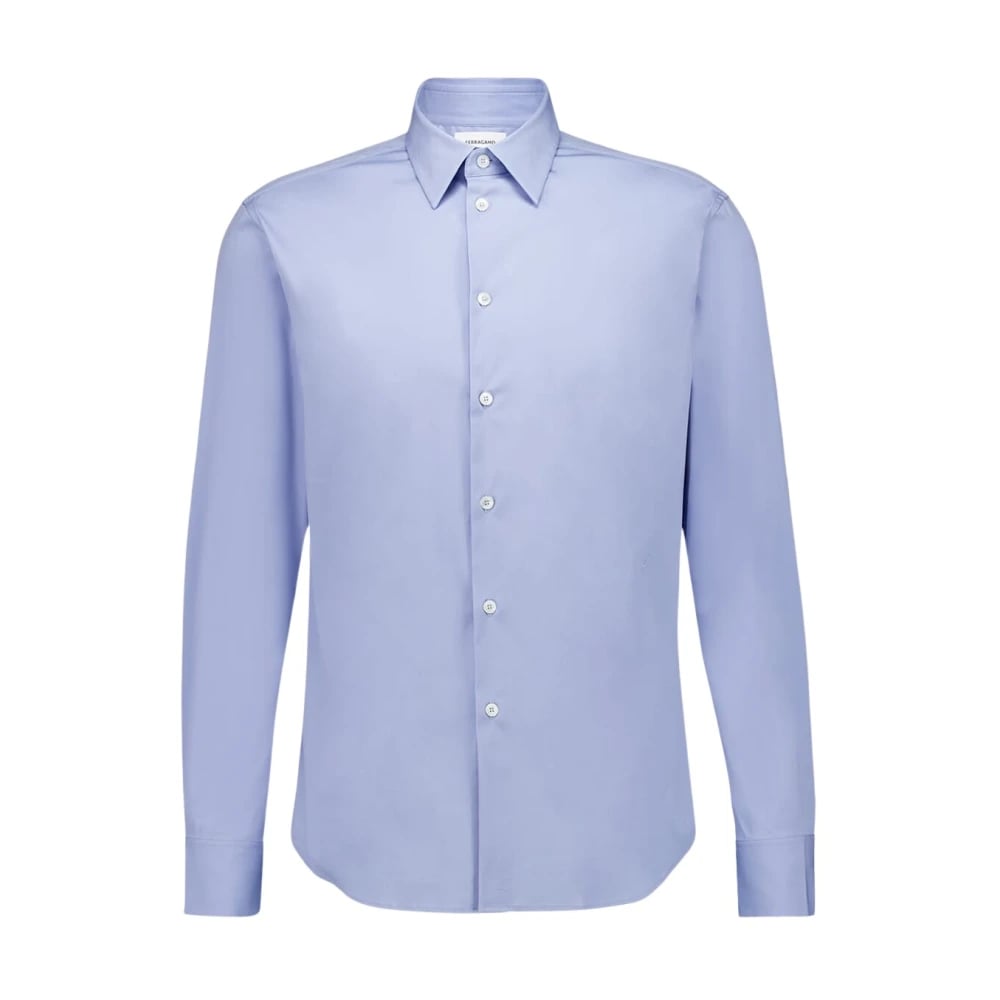 Ferragamo, Skjortor , Herr, XL, Bomull, Blå Stretch Bomull Poplin Skjorta