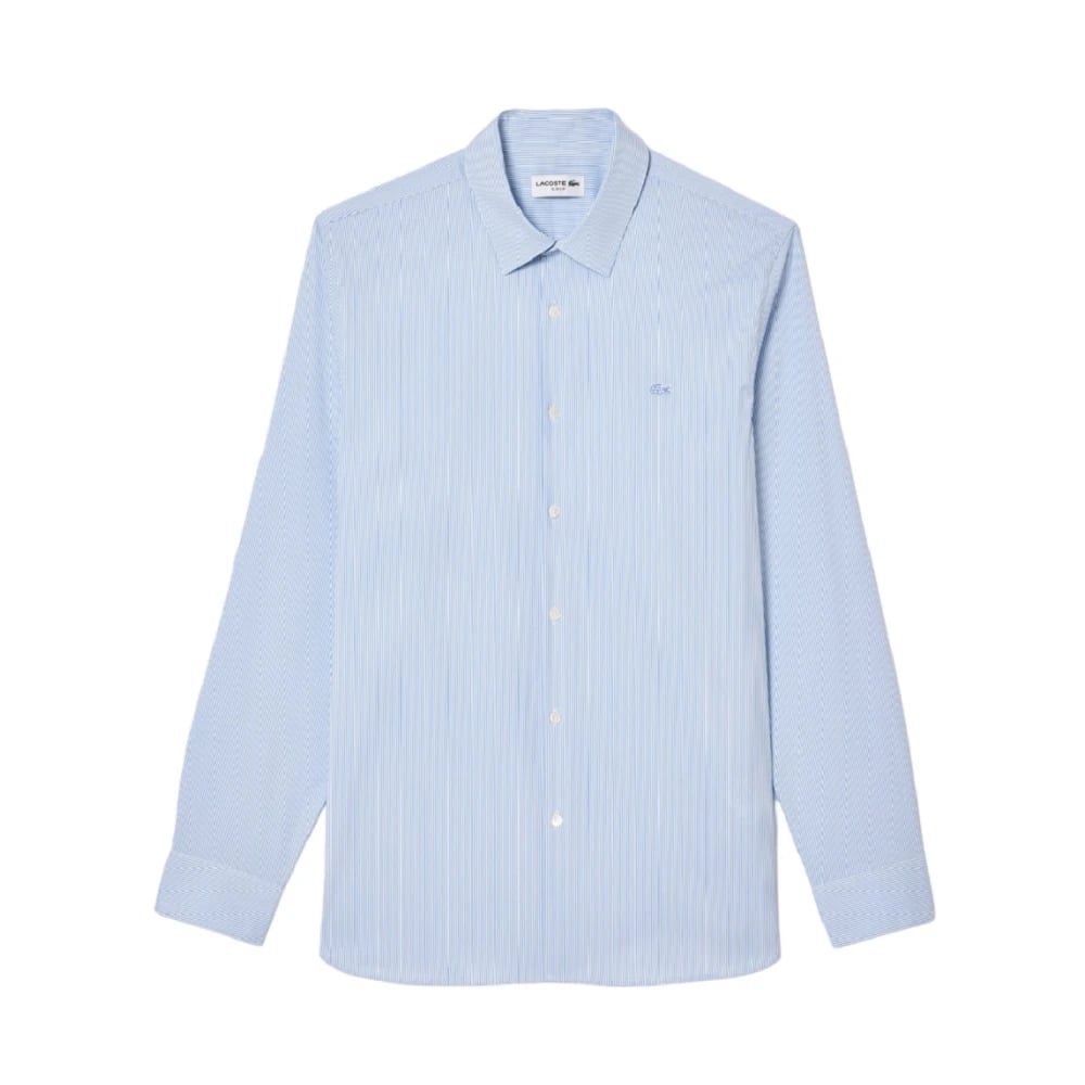 Lacoste, Skjortor , Herr, L, Bomull, Slim Fit Randig Stretch Skjorta med Knäppning