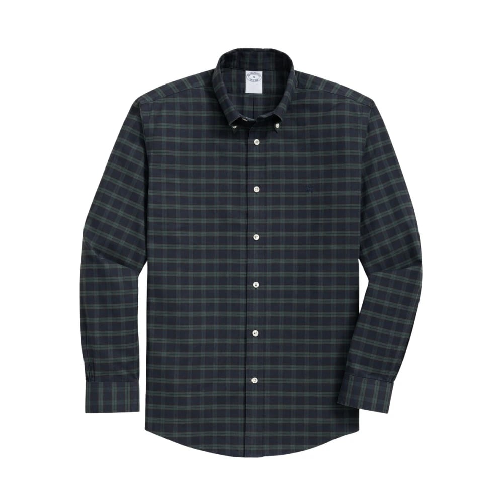 Brooks Brothers, Skjortor , Herr, L, Bomull, Slim Fit Non-Iron Rutig Stretch Twill Skjorta med Button Down-krage