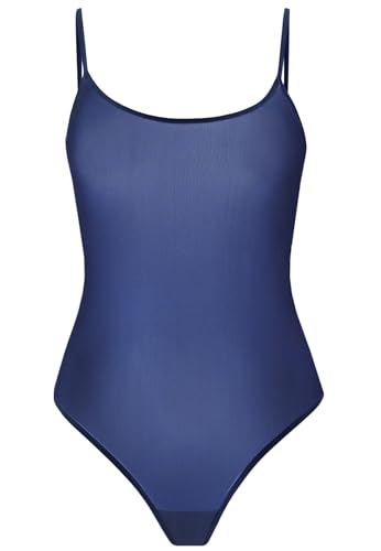Teyli Bodysuit dam body string body – mesh top body dam string body – body dam med tunna elastiska remmar, blå, XS