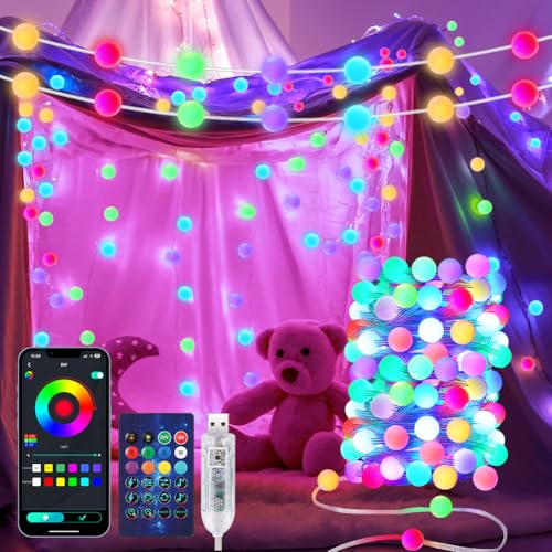 AUAUY Smart Globe String Lights, 10M 66 LED Utomhus/Inomhus String Lights, Färgbyte, USB-driven, med App, Halloween Party Dekoration, Jul