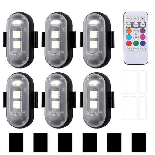 AVCXEC 6 stycken trådlösa LED-lampor, 8 färger strobe drönarlampa, vattentät bil fjärrkontroll blixt med fjärrkontroll, USB-laddning antikollisionslampor, LED-flygplan strobe lampor