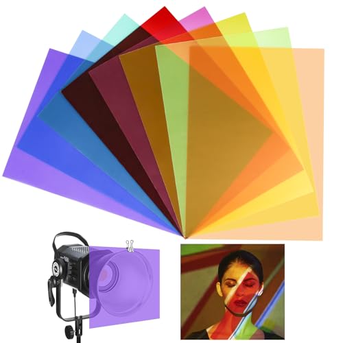 SWTYExt 20 stycken folie värmebeständig för lampor 10 färger lampfolie 29,7 x 21 cm färgfolie gel färgfilter A4 transparent färgkorrigering för fotolampa strålkastare grafi studio strobe blixt LED