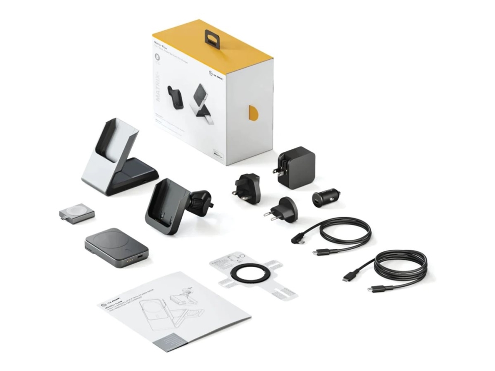 Alogic Matrix+ Flow - Trådlöst Laddställ - 3-I-1 + Bilströmsadapter + Trådlös Strömbank För Laddning - 5000 Mah - 30 Watt - 3 A - Svart Och Vit
