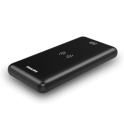 Philips DLP1011Q/00 – strömbank med trådlös Qi-laddningsfunktion – 1X typ C och 2X USB-A-utgångar – LED-indikator – 10 000 mAh – svart
