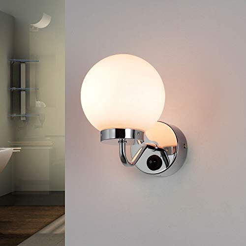 Vägglampa TOGO Glasmetall i Krom Med Strömbrytare IP44 för Badrum H: 19 cm E14 Max 40 Watt Kula Klassisk