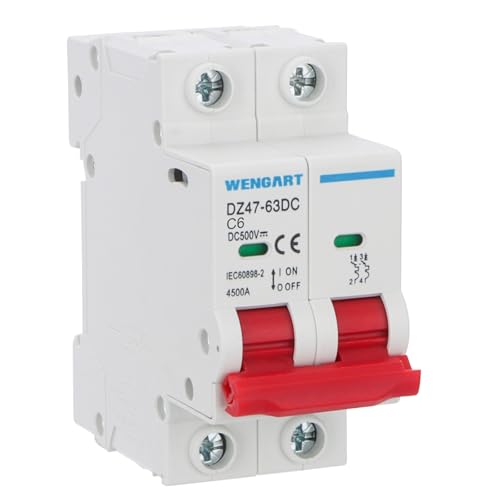 Wengart DC-strömbrytare DZ47-63Z, DC frånkoppling switch, 500V 2 poler, DIN Rail Mount, Arbeta för batteri och solcellssystem och andra likströmssystem (6A)