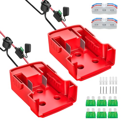 2 stycken krafthjulsadapter för Milwaukee 18 V batteri, batteriadapter, Dock Power Connector 14 AWG med säkring och strömbrytare, batterikonverteringssats, säker batteriadapter för RC bil,