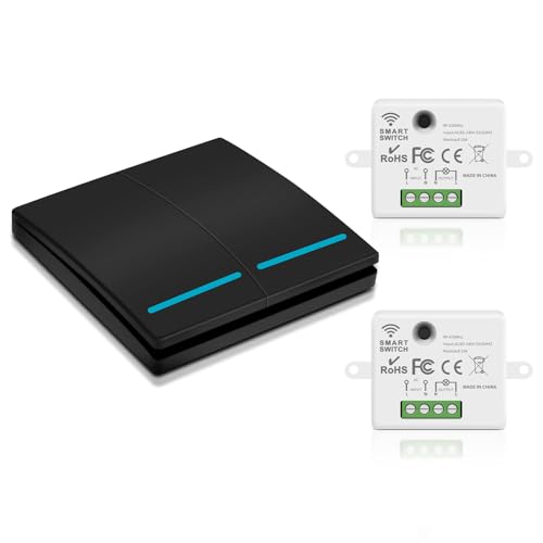 MOES RF433 trådlös strömbrytare batterilös, trådlös strömbrytare inget batteri, väggljusbrytare självförsörjd inga kablar krävs väggplatta sändare (2-vägs set), vit