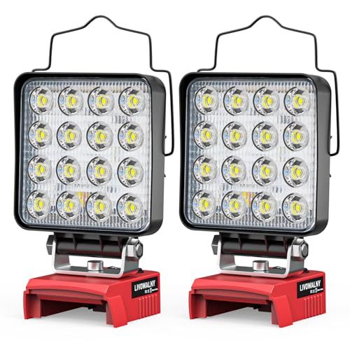 LIVOWALNY 2 st LED-lampa, batteri kompatibel med Milwaukee 18 V, 48 W batterilampa LED byggspotlight dubbel strömbrytare med typ C/USB-arbet för garage, camping, byggplats (utan batteri)