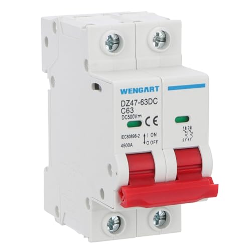 Wengart DC-strömbrytare DZ47-63Z, DC frånkoppling switch, 500V 2 poler, DIN Rail Mount, Arbeta för batteri och solcellssystem och andra likströmssystem (63A)