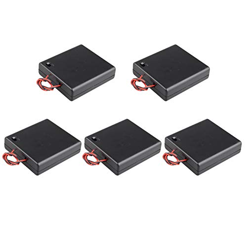 HALJIA 5 st 6 V AA 4 x 1,5 V batterihållare fodral plast batteri förvaringslåda med på/av strömbrytare fodral skydd ledningar