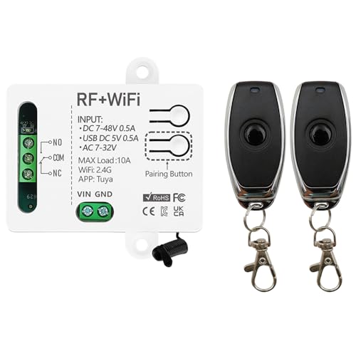 DieseRC Tuya Smart 1 kanal WIFI intelligent strömbrytare Fjärrkontroll, DC 5 V 12 V 24 V 36 V passiv utgång relämodul, med 2 x RF-fjärrkontroll, kompatibel med Alexa/Google Home