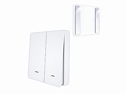 Tedeligo Trådlös ljusbrytare, avtagbar trådlös strömbrytare med radiosändare, 100 m räckvidd, 2 300 W, fjärrkontroll för lampor, ingen kabeldragning krävs, vit (2 sändare och 1 mottagare)