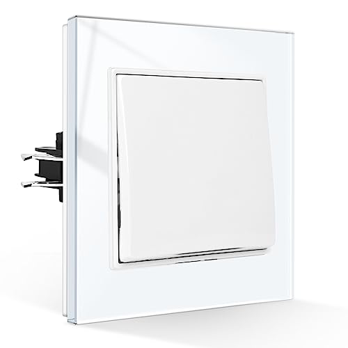 CNBINGO Ljusbrytare 1 fack 1 vägs glas strömbrytare infälld, skruvlös vippströmbrytare taktil väggströmbrytare kristall vippbrytare, vit