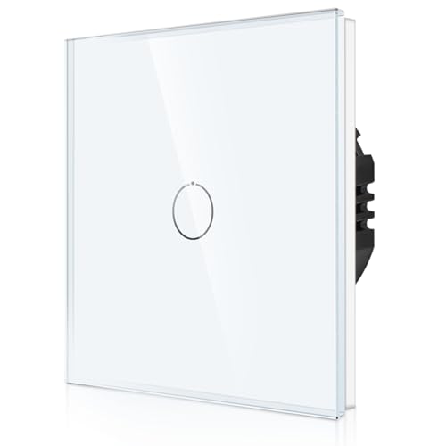 CNBINGO Touch-strömbrytare infälld i vitt – enkel väggströmbrytare med statusLED och glaspanel – ingen neutral ledare krävs – 1 fack touchströmbrytare – 500 W