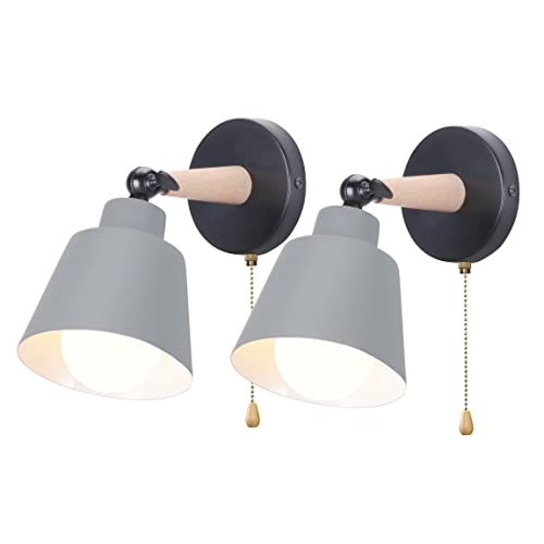 iDEGU Set med 2 retro vintage vägglampor, E27, industriell taklampa i trä och metall, justerbar vägglampa inomhus, med strömbrytare, modern vägglampa för sovrum, entré, vardagsrum (grå)