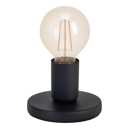 ZMH Retrobordslampa med 1 glödlampa, vintagelampa för sängbord, vardagsrum, industriell design av metall och trä – svart – sockel: E27 – med strömbrytare – utan ljuskälla (50 cm)
