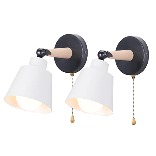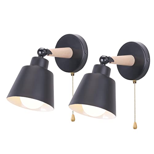 IDEGU Set med 2 retro vintage vägglampor, E27, industriell taklampa i trä och metall, justerbar vägglampa inomhus, med strömbrytare, modern vägglampa för sovrum, entré, vardagsrum (svart)