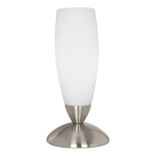 Eglo Bord slim, bord, sänglampa i metall och glas, vardagsrum i nickelmatta, vit, lampa med strömbrytare, E14-sockel