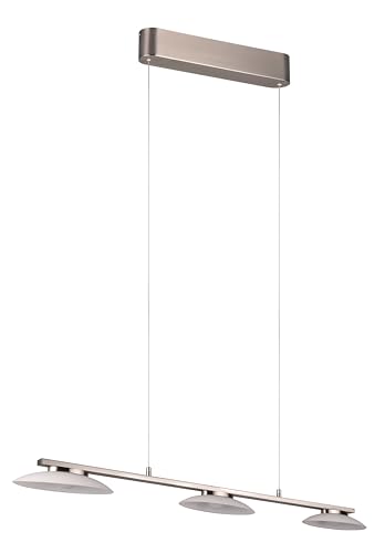 Trio Merton LED pendellampa 343610307, matt nickel metall, vitt glas, inkl. 3x 9 Watt LED, dimmer strömbrytare, lyft mig