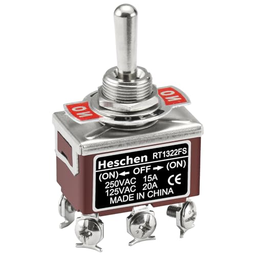 Heschen Strömbrytare i metall DPDT tillfällig (PÅ)/OFF/(PÅ) 3 positioner 15 A 250 VAC 6 fliksterminal CE
