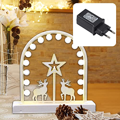 Hellum LED-dekorationslampa, stjärna och ren, vit, metall, med strömbrytare, 17 varmvita lysdioder, 26x26 cm, vit kabel, inomhus, juldekoration, 59 lm, 577068