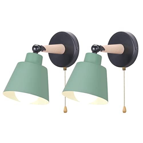 iDEGU Set med 2 retro vintage vägglampor, E27, industriell taklampa i trä och metall, justerbar vägglampa inomhus, med strömbrytare, modern vägglampa för sovrum, entré, vardagsrum (grön)