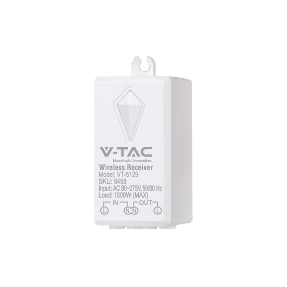 RF/WiFi mottagare för trådlösa strömbrytare - 1000W, räckvidd upp till 500m, vit, PC plast