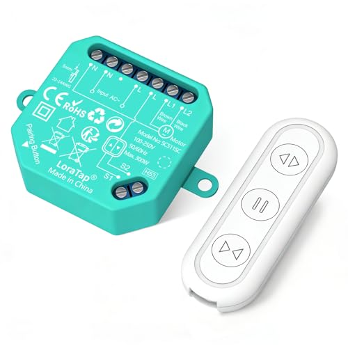 LoraTap Radiofrekvensomkopplare (RF) trådlös modul med fjärrkontroll, fungerar med traditionell strömbrytare, 300 W relä för elektriska persienner och gardiner, utan Wi-Fi