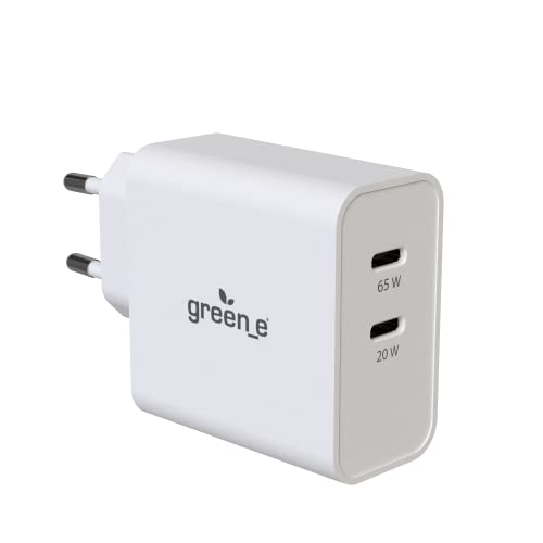 GREEN-E - miljövänlig USB-C hemladdare med låg strömförbrukning - GaN-teknik - 65+20W
