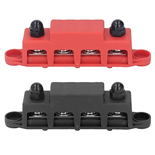 Samlingsskena 12 V–48 V DC samlarskenor fördelningsblock 150 A bussbar strömfördelningsblock 2-vägs med 12 x M4 klämbultar för bil, lastbil, yacht, båt, röd, svart, 2 stycken