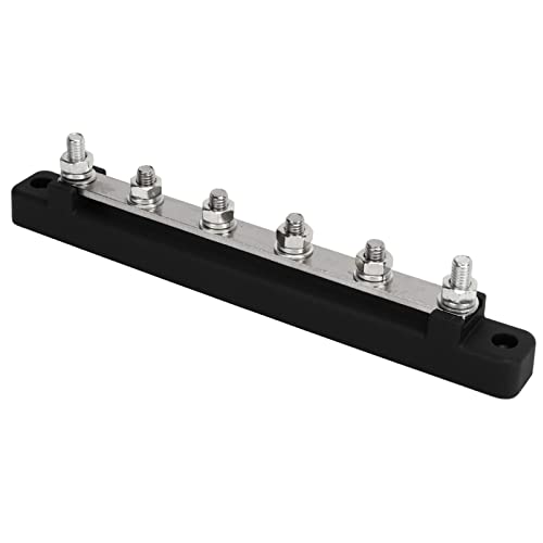Strömfördelningsblock Bussskena, M6 Skruv 6 Terminal Bussskena DC 12V-48V 150A för Marinbil Trailer Husbil Båt (Svart)
