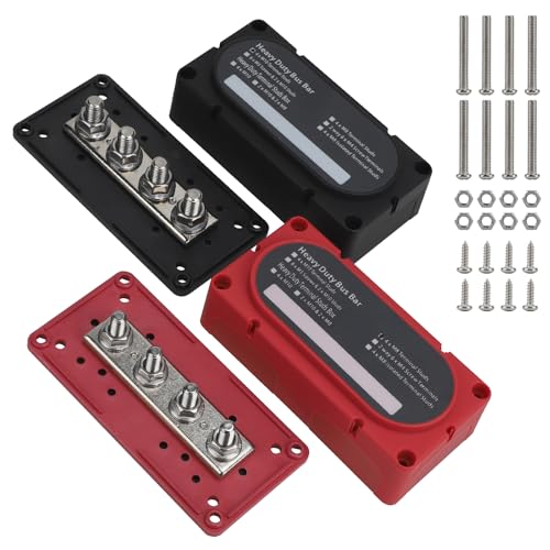2st Strömfördelningsblock Bus Bar 48V 250A Heavy Duty Modul Terminal Block Bus Bar DC Box 4 Positioner M10 för RV Marin Röd Svart
