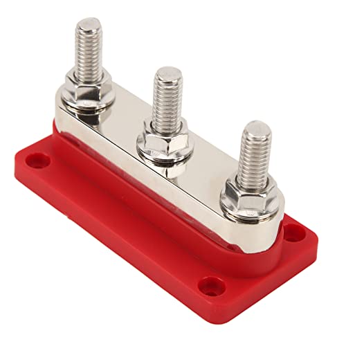 12 Till 48V 600A Strömfördelningsblock 3 Stift M10 Batterikopplingsblock Bussskena för Billastbilar Husbilar Marinbåtar Industriell Utrustning (Röd)